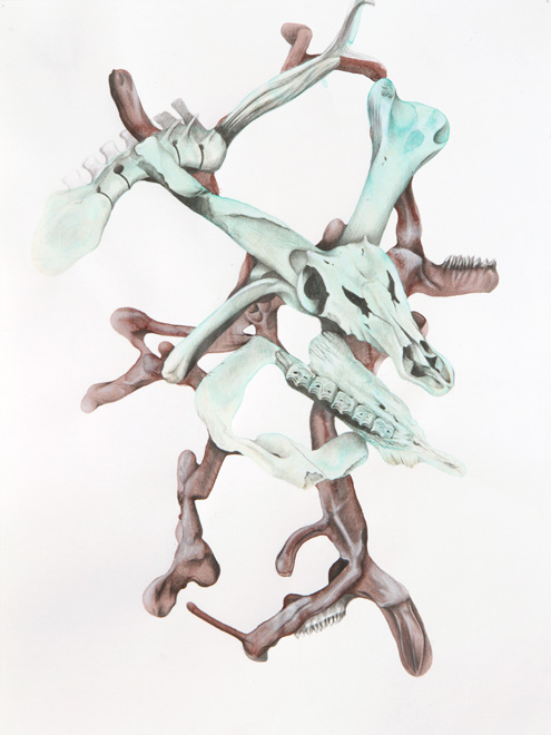 Desert Osteogenesis, 2011, 24″x18″, Ink, graphite, and white pencil on paper